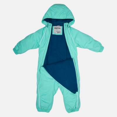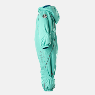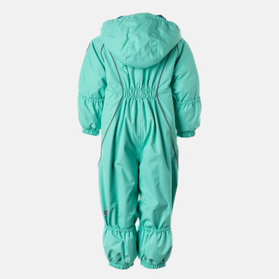 Babies’ waterproof and windproof between-seasons overall. Breathable fabric. Flannel lining on the inside. Integrated elastic band at sleeve and leg ends and around hood. Removable snap-on hood. Sleeve and leg ends can be conveniently rolled down in sizes 68–80. Waterproof taped seams. The product comes with both silicone and rubber foot straps. Reflective elements on fabric.