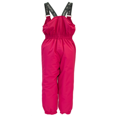 Comfortable, high-waisted, thin, uninsulated trousers for children. The trousers with adjustable elastic suspenders are lined with taffeta. For more comfortable wearing, the trousers have an elastic waistband, a taped seat seam to prevent moisture from easily entering, and a zipper on the front for more comfortable dressing. In addition, the trousers have silicone rubber at the bottom to keep the trousers well on top of the shoes. For safer wearing, the trousers have reflective strips added to the side seams.