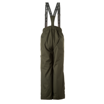 Children´s spring-autumn trousers The trousers are waterproof and windproof. Breathable outer fabric. The inside of the trousers is made of soft lining fabric. Removable adjustable elastic braces. A wide rubber band is incorporated into the waist. Rubber band tunnel with stoppers at the ends of the legs. Waterproof taped seat seam. Reflective details on the outer fabric.