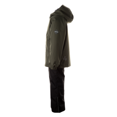 Children´s transition season jacket and pants set. Water and wind-resistant breathable outer fabric. Rubber band incorporated in the sleeve ends and the edge of the hood. Adjustable elastic cord tunnel at the bottom. Wide elastic band incorporated in the waste of the trousers. Both jackets and trousers have reflective details.