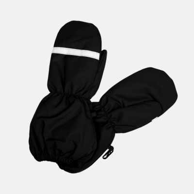 Children’s waterproof and windproof mittens with lining. Breathable fabric. Integrated elastic band on wrist and at bottom. Soft fleece on the inside. Reflective elements on fabric.