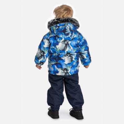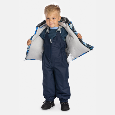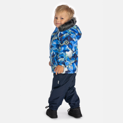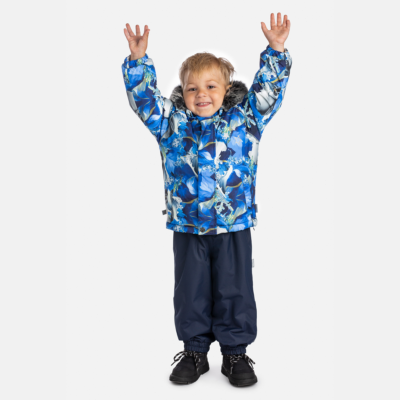 Children’s waterproof and windproof jacket. Breathable fabric. Soft mesh lining on the inside. Removable snap-on hood. Integrated elastic band at sleeve ends. Zipper covered with stud-press flap at front. Integrated pockets at front. Faux fur trim on hood. Reflective elements on fabric.
