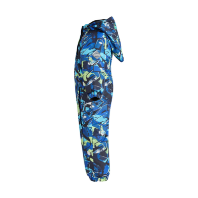 The overall is suitable both for babies or for toddlers who can already walk. The overall has windproof and waterproof top fabric, nice and soft cotton flannel lining inside, and 200 g of insulation. Breathable fabric. Integrated elastic band at sleeve and leg ends and around hood. Elastic foot straps. Sleeve and leg ends can be conveniently rolled down in sizes 68–80. The long zippers make it easy to dress the child, the seams on the bottom and sides are taped and leg ends are covered with the top fabric from the inside to ensure the child stays dry. Reflective elements have been added so that the child is visible in the dark. The removable hood is safe for paying outside – it is secured by press-studs to avoid getting stuck.