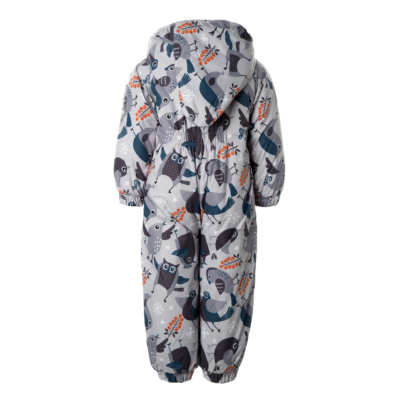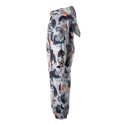 The overall is suitable both for babies or for toddlers who can already walk. The overall has windproof and waterproof top fabric, nice and soft cotton flannel lining inside, and 200 g of insulation. Breathable fabric. Integrated elastic band at sleeve and leg ends and around hood. Elastic foot straps. Sleeve and leg ends can be conveniently rolled down in sizes 68–80. The long zippers make it easy to dress the child, the seams on the bottom and sides are taped and leg ends are covered with the top fabric from the inside to ensure the child stays dry. Reflective elements have been added so that the child is visible in the dark. The removable hood is safe for paying outside – it is secured by press-studs to avoid getting stuck.