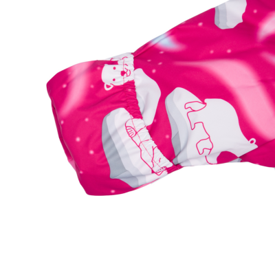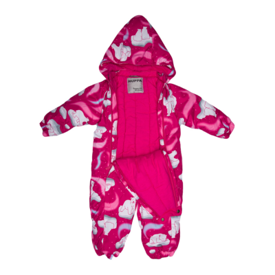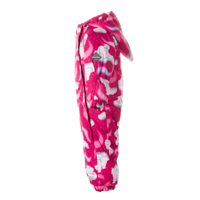 The overall is suitable both for babies or for toddlers who can already walk. The overall has windproof and waterproof top fabric, nice and soft cotton flannel lining inside, and 200 g of insulation. Breathable fabric. Integrated elastic band at sleeve and leg ends and around hood. Elastic foot straps. Sleeve and leg ends can be conveniently rolled down in sizes 68–80. The long zippers make it easy to dress the child, the seams on the bottom and sides are taped and leg ends are covered with the top fabric from the inside to ensure the child stays dry. Reflective elements have been added so that the child is visible in the dark. The removable hood is safe for paying outside – it is secured by press-studs to avoid getting stuck.