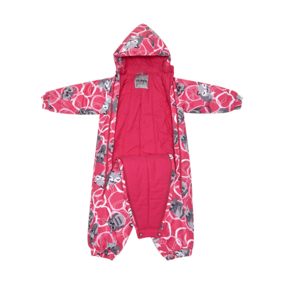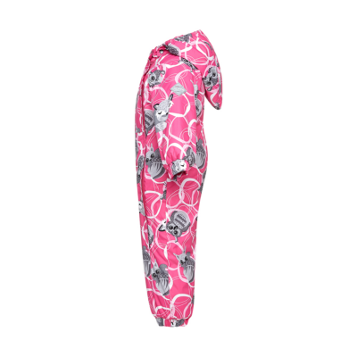 The overall is suitable both for babies or for toddlers who can already walk. The overall has windproof and waterproof top fabric, nice and soft cotton flannel lining inside, and 200 g of insulation. Breathable fabric. Integrated elastic band at sleeve and leg ends and around hood. Elastic foot straps. Sleeve and leg ends can be conveniently rolled down in sizes 68–80. The long zippers make it easy to dress the child, the seams on the bottom and sides are taped and leg ends are covered with the top fabric from the inside to ensure the child stays dry. Reflective elements have been added so that the child is visible in the dark. The removable hood is safe for paying outside – it is secured by press-studs to avoid getting stuck.