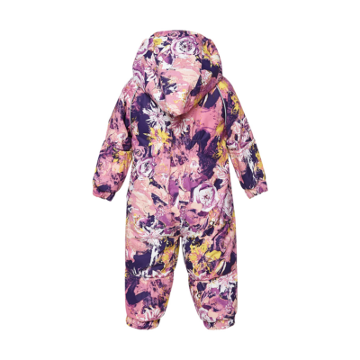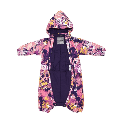 The overall is suitable both for babies or for toddlers who can already walk. The overall has windproof and waterproof top fabric, nice and soft cotton flannel lining inside, and 200 g of insulation. Breathable fabric. Integrated elastic band at sleeve and leg ends and around hood. Elastic foot straps. Sleeve and leg ends can be conveniently rolled down in sizes 68–80. The long zippers make it easy to dress the child, the seams on the bottom and sides are taped and leg ends are covered with the top fabric from the inside to ensure the child stays dry. Reflective elements have been added so that the child is visible in the dark. The removable hood is safe for paying outside – it is secured by press-studs to avoid getting stuck.