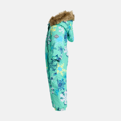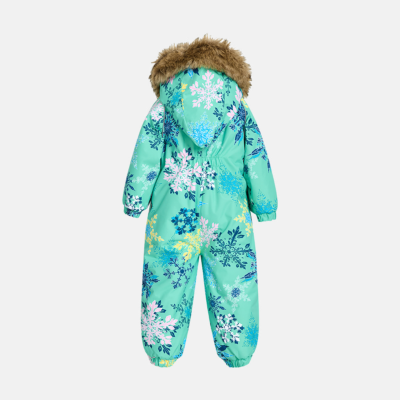 Children’s waterproof and windproof overall. Breathable fabric. Suitable for both babies or for toddlers who can already walk. Nice and soft flannel lining on the inside. Integrated elastic band at sleeve and leg ends. Removable hood attaches to the collar with press-studs to ensure safety when the wearer gets stuck. Sleeve and leg ends can be conveniently rolled down in sizes 68–80. Waterproof taped seams. The overall has no inner leg seam. Elastic foot straps. Removable faux fur trim on hood. Reflective elements on the fabric add safety when wearing in the dark.
