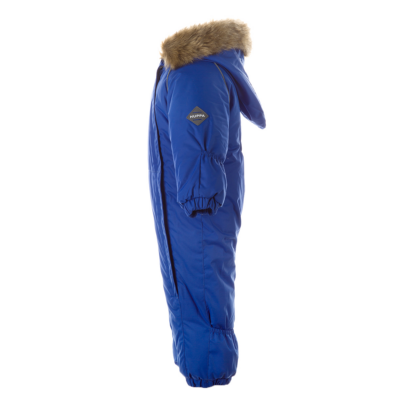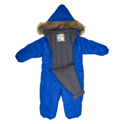Children’s waterproof and windproof overall. Breathable fabric. Suitable for both babies or for toddlers who can already walk. Nice and soft flannel lining on the inside. Integrated elastic band at sleeve and leg ends. Removable hood attaches to the collar with press-studs to ensure safety when the wearer gets stuck. Sleeve and leg ends can be conveniently rolled down in sizes 68–80. Waterproof taped seams. The overall has no inner leg seam. Elastic foot straps. Removable faux fur trim on hood. Reflective elements on the fabric add safety when wearing in the dark.
