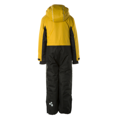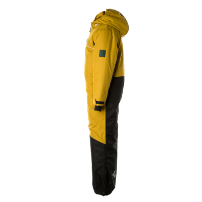 Children’s water- and windproof overalls with 200 g insulation. Breathable outer fabric. Soft lining fabric inside. Detachable hood. Adjustable elastic rubber band at the edge and back of the hood. Ribbed cuffs on sleeves. Adjustable sleeve cuffs. Front zipper with placket. Front zipper pockets and zipper breast pocket. Elastic waistband with buttonholes. Leg part in durable Cordura fabric. Waterproof taped seams. Reflective detailing on outer fabric.