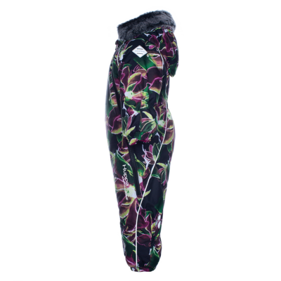Babies’ modern waterproof and windproof winter overall. Breathable fabric. Flannel lining on the inside. Integrated elastic band at sleeve and leg ends and at waist on the back. The removable snap-on hood is safe for when the child gets stuck when playing outside. Sleeve and leg ends can be conveniently rolled down in sizes 68–80. Waterproof taped seams. The product comes with both silicone and rubber foot straps. Faux fur trim on hood. The high-performance top fabric is great to wear for children in any winter weather. The insides of leg ends are also covered with the main fabric to keep the child dry. Numerous reflective elements on the top fabric ensure visibility from all sides in the dark winter time.