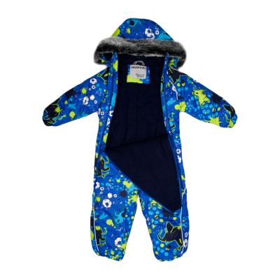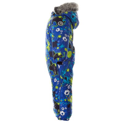 Babies’ modern waterproof and windproof winter overall. Breathable fabric. Flannel lining on the inside. Integrated elastic band at sleeve and leg ends and at waist on the back. The removable snap-on hood is safe for when the child gets stuck when playing outside. Sleeve and leg ends can be conveniently rolled down in sizes 68–80. Waterproof taped seams. The product comes with both silicone and rubber foot straps. Faux fur trim on hood. The high-performance top fabric is great to wear for children in any winter weather. The insides of leg ends are also covered with the main fabric to keep the child dry. Numerous reflective elements on the top fabric ensure visibility from all sides in the dark winter time.
