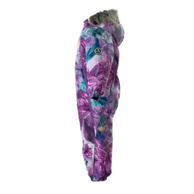 Babies’ modern waterproof and windproof winter overall Breathable fabric Flannel lining on the inside Integrated elastic band at sleeve and leg ends and at waist on the back The removable snap-on hood is safe for when the child gets stuck when playing outside Sleeve and leg ends can be conveniently rolled down in sizes 68–80 Waterproof taped seams The product comes with both silicone and rubber foot straps Faux fur trim on hood The high-performance top fabric is great to wear for children in any winter weather The insides of leg ends are also covered with the main fabric to keep the child dry Numerous reflective elements on the top fabric ensure visibility from all sides in the dark winter time