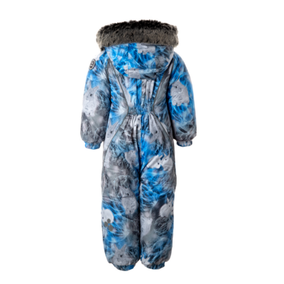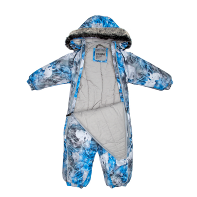 Babies’ modern waterproof and windproof winter overall. Breathable fabric. Flannel lining on the inside. Integrated elastic band at sleeve and leg ends and at waist on the back. The removable snap-on hood is safe for when the child gets stuck when playing outside. Sleeve and leg ends can be conveniently rolled down in sizes 68–80. Waterproof taped seams. The product comes with both silicone and rubber foot straps. Faux fur trim on hood. The high-performance top fabric is great to wear for children in any winter weather. The insides of leg ends are also covered with the main fabric to keep the child dry. Numerous reflective elements on the top fabric ensure visibility from all sides in the dark winter time.