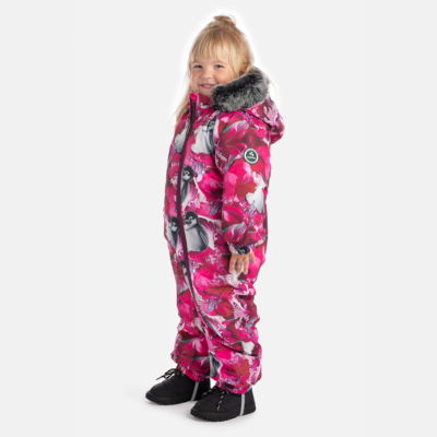 Babies´ waterproof and windproof winter overall with 300g insulation. The breathable fabric and soft flannel lining on the inside ensure all-day comfort. Designed with practicality in mind, it features elasticated sleeve and leg ends, as well as an elastic waistband at the back. The removable snap-on hood is safety-conscious. In sizes 68–80, the sleeve and leg ends can be rolled down for extended wear. Fully taped waterproof seams, a faux fur trim on the hood, and reflective details on the outer fabric complete the design for comfort, safety, and style.