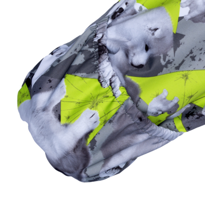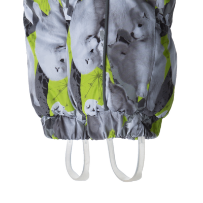 Babies’ waterproof and windproof winter overall. Breathable fabric. Flannel lining on the inside. Integrated elastic band at sleeve and leg ends and at waist on the back. Removable snap-on hood. Sleeve and leg ends can be conveniently rolled down in sizes 68–80. Waterproof taped seams. The overall has no inner leg seam. The product comes with both silicone and rubber foot straps. Faux fur trim on hood. Reflective elements on fabric.