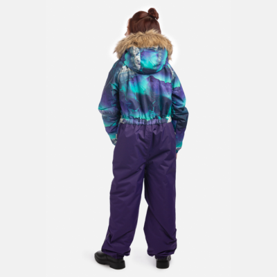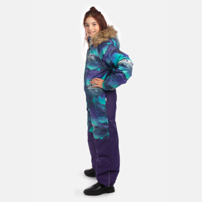 Children’s water- and windproof snowsuit with 200 g insulation. Breathable outer fabric. Soft fabric on the inside of the snowsuit. Elastic cuffs of sleeve and leg ends, plus hood with elastic edging. Detachable hood fastens to the collar with snap buttons. Elastic waistband with buttonholes. Waterproof taped seams. The product comes with elastic stirrups. Reflective detailing on outer fabric.