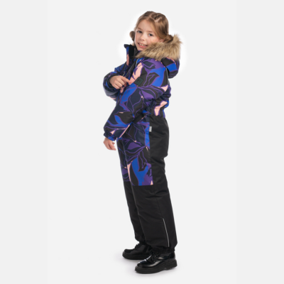 Children’s waterproof and windproof overall. Breathable fabric. Soft fabric on the inside. Integrated elastic band at sleeve and leg ends. Removable snap-on hood. Integrated zipper pocket at front. Waterproof taped seams. Elastic foot straps. Removable faux fur trim on hood. Reflective elements on fabric.