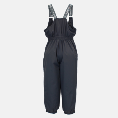 Children´s waterproof and windproof trousers. Breathable outer fabric. Inside of soft lining fabric. The trousers have a higher waist and adjustable elastic braces. Rubber band incorporated on the waistline and leg ends. Waterproof taped seat seam. The pants have no inseam on the leg. Reflective details on the outer fabric.