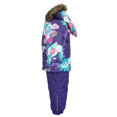 Children´s winter set. The set has a nice soft cotton flannel lining and breathable and waterproof outer fabric that is well suited to our climate. The jacket has 300g and the pants have 160g of insulation. The high-waisted pants have a taped seat seam, which allows the toddler to enjoy winter joys without worry and stay dry and warm at the same time. For more comfortable wearing, the set has a removable fur hood, adjustable elastic suspenders and two great pockets for storing finds. Reflective details in the cutouts allow for safe play even in the dark.