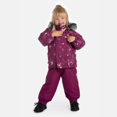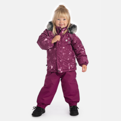 Children’s Winter Jacket & Pants Set. A durable and protective set designed for active winter days. Both the jacket and pants are made with a waterproof, windproof, and breathable outer fabric to keep children dry and comfortable. The soft mesh lining adds extra comfort on the inside. The jacket features an integrated elastic band at the sleeve ends, a removable snap-on hood with faux fur trim, and reflective elements for visibility. The bib pants come with elastic, adjustable braces, an integrated elastic waistband, and fully taped waterproof seams. Together, they offer reliable warmth, comfort, and protection for all winter adventures.