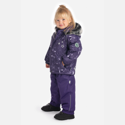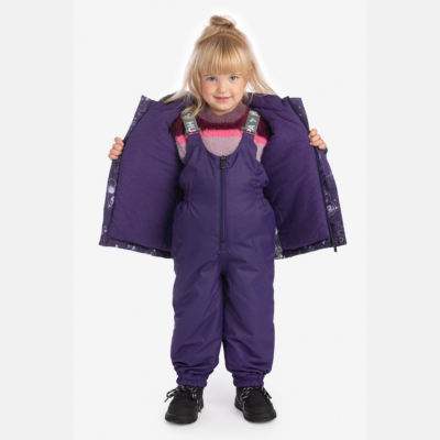 Children’s Winter Jacket & Pants Set. A durable and protective set designed for active winter days. Both the jacket and pants are made with a waterproof, windproof, and breathable outer fabric to keep children dry and comfortable. The soft mesh lining adds extra comfort on the inside. The jacket features an integrated elastic band at the sleeve ends, a removable snap-on hood with faux fur trim, and reflective elements for visibility. The bib pants come with elastic, adjustable braces, an integrated elastic waistband, and fully taped waterproof seams. Together, they offer reliable warmth, comfort, and protection for all winter adventures.