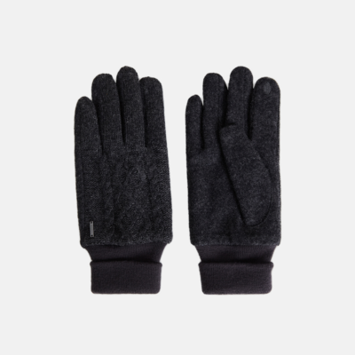 Men’s gloves knitted in soft wool blend. Soft napped lining. Touchscreen thumb and index finger.