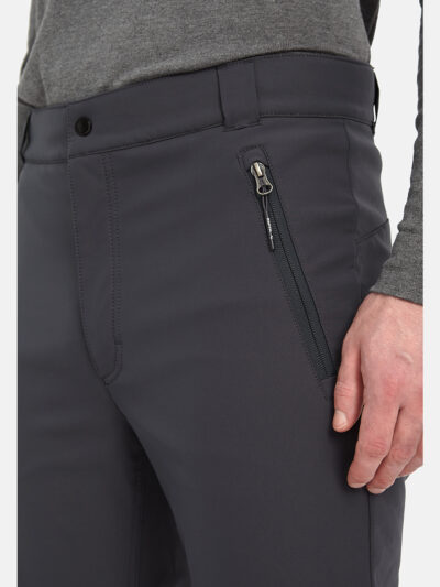 Men’s windproof Softshell pants. Brushed soft on the inside. Buttonhole-adjustable waist. Integrated zippered pockets. Reflective logo on lower leg.
