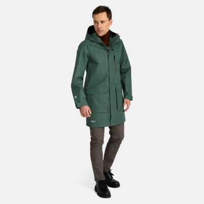 Men’s water- and windproof coat, suitable for spring and autumn. The outer fabric is breathable. The lining of the coat is soft. Adjustable hood and sleeve cuffs. Waterproof taped seams. The outer fabric is decorated with reflective details.