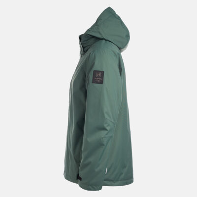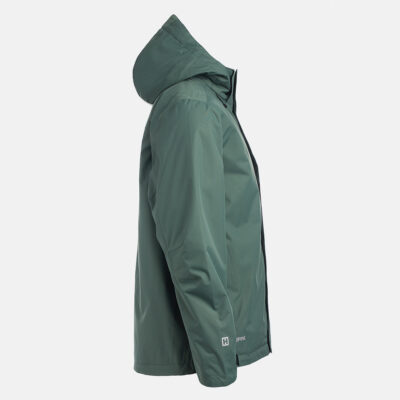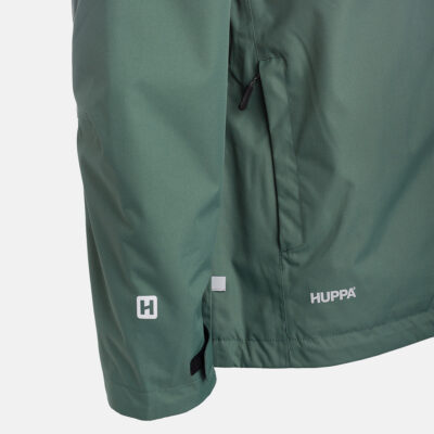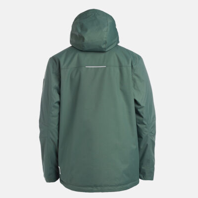 Insulated (40 g) water- and windproof jacket for men, suitable for spring and autumn. The outer fabric is breathable. The lining of the jacket is soft. Removable hood, zippered pockets and adjustable sleeve cuffs. Waterproof taped seams. Air vents under the arms. The outer fabric is decorated with reflective details.