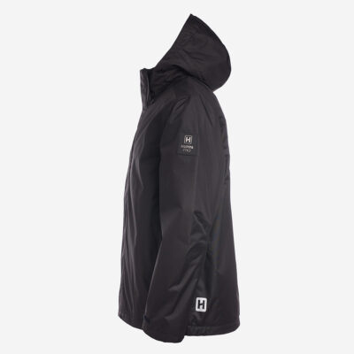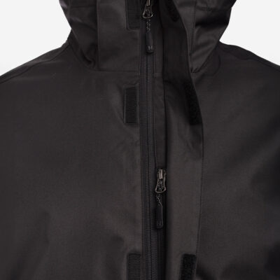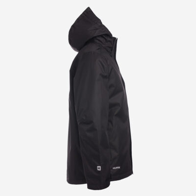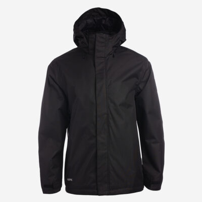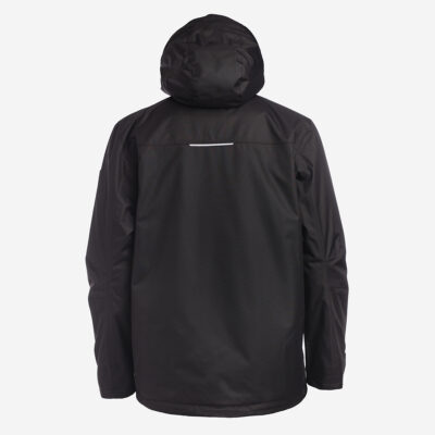 Insulated (40 g) water- and windproof jacket for men, suitable for spring and autumn. The outer fabric is breathable. The lining of the jacket is soft. Removable hood, zippered pockets and adjustable sleeve cuffs. Waterproof taped seams. Air vents under the arms. The outer fabric is decorated with reflective details.