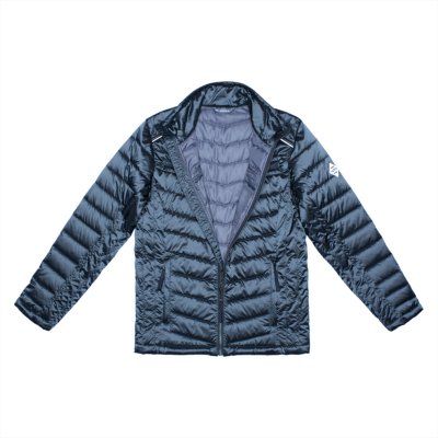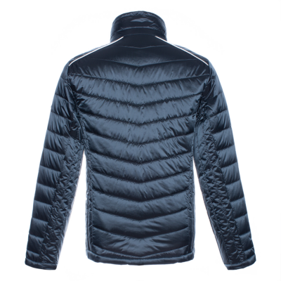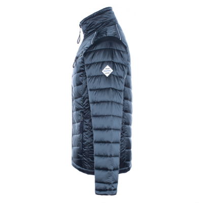 Men´s quilted jacket. Windproof slightly glossy top fabric. The jacket is filled with innovative recycled material imitating the properties of feather fill. The material is warm, dries quickly and does not clump after washing. A great to natural feather fill.