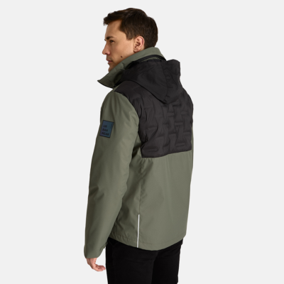 Insulated (40 g) water- and windproof jacket for men, suitable for spring and autumn. The outer fabric is breathable. The lining of the jacket is soft. The hood can be hidden in inside the collar. The jacket has adjustable sleeves. Waterproof taped seams. The outer fabric is decorated with reflective details. The product includes materials made of recycled fibres.
