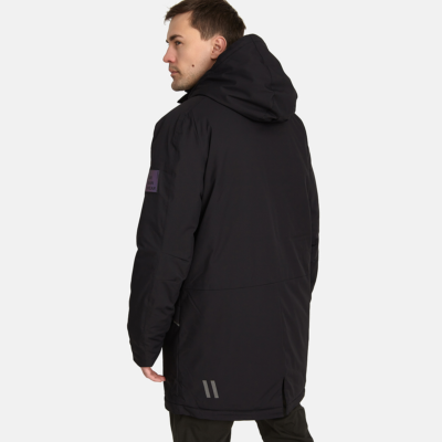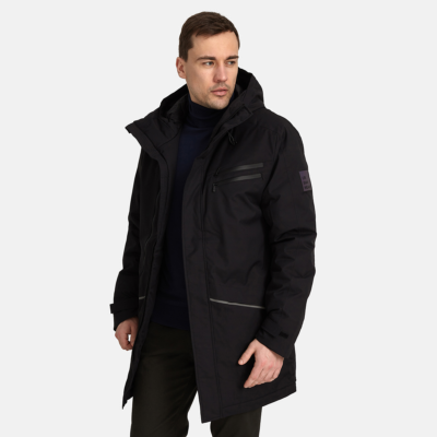 Men’s waterproof and windproof semi-season parka. Breathable fabric. Soft lining on the inside. Adjustable hood and sleeve ends. Ribbed cuffs at sleeve ends. Integrated breast pockets with waterproof zippers. Waterproof taped seams. Reflective elements on fabric.