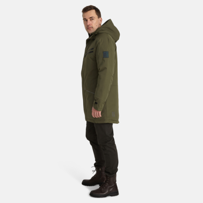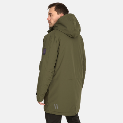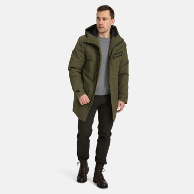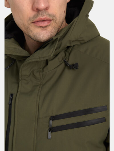 Men’s waterproof and windproof semi-season parka. Breathable fabric. Soft lining on the inside. Adjustable hood and sleeve ends. Ribbed cuffs at sleeve ends. Integrated breast pockets with waterproof zippers. Waterproof taped seams. Reflective elements on fabric.
