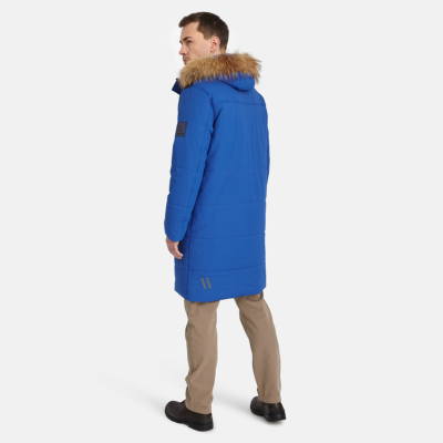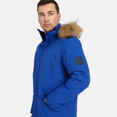 Men´s waterproof and windproof parka with 200g insulation. The parka has chest pockets with zippers and front pockets with magnets. The hood with natural fur is removable, which makes it easy to maintain. Reflective details.
