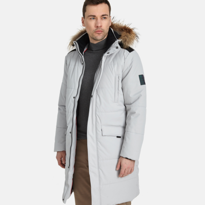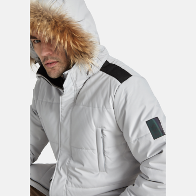 Men´s waterproof and windproof parka with 200g insulation. The parka has chest pockets with zippers and front pockets with magnets. The hood with natural fur is removable, which makes it easy to maintain. Reflective details.