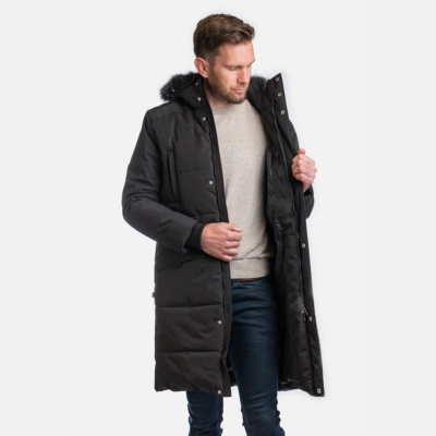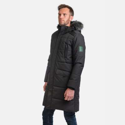 Men’s waterproof and windproof winter parka with 200g insulation. This parka combines warmth, function, and modern design. It features zippered chest pockets and magnetic front pockets for practical storage. The hood, complete with removable faux fur trim, offers versatility and easy care. Finished with reflective details for added safety in low light.