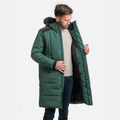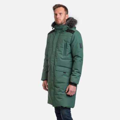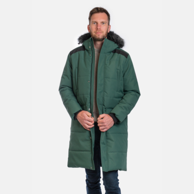 Men’s waterproof and windproof winter parka with 200g insulation. This parka combines warmth, function, and modern design. It features zippered chest pockets and magnetic front pockets for practical storage. The hood, complete with removable faux fur trim, offers versatility and easy care. Finished with reflective details for added safety in low light.