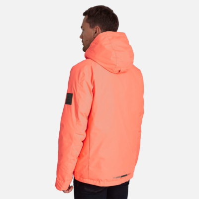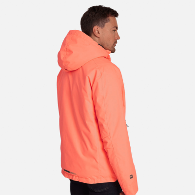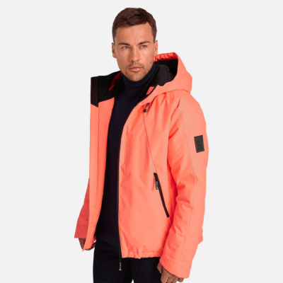 Men’s waterproof and windproof winter jacket Breathable fabric Soft mesh lining on the inside Adjustable hood Ribbed cuffs at sleeve ends Waterproof zipper at front, zippered pockets Integrated drawstring tunnel with stoppers at bottom The jacket is filled with innovative recycled material imitating the properties of feather fill The material is warm, dries quickly and does not clump after washing A great alternative to natural feather fill Reflective elements on fabric