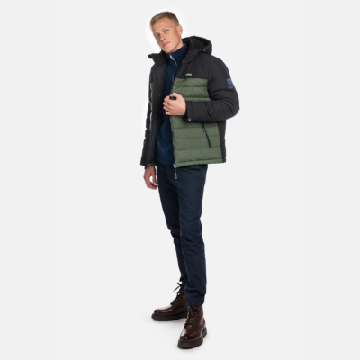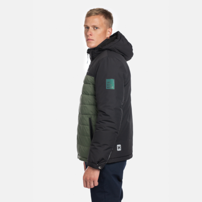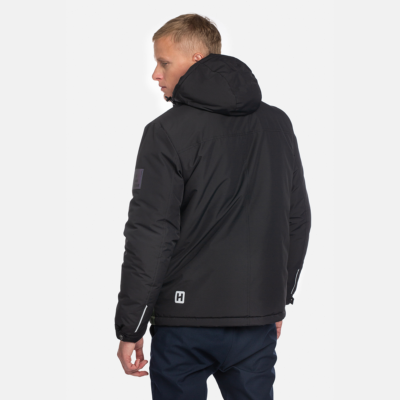 Men´s water- and windproof winter jacket with 200 g insulation. The jacket is made from recycled fibre materials. Breathable outer fabric. Soft lining fabric inside the jacket. Adjustable hood and sleeve cuffs. Detachable hood fastens to the collar with a zip. Ribbed cuffs on sleeves. Waterproof zipper front and pockets. Rubber cord tunnel with stoppers at the bottom. Reflective detailing on outer fabric.