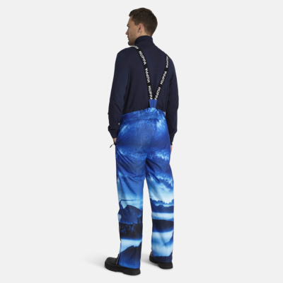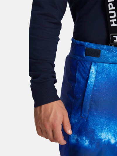 Men’s waterproof and windproof pants. Breathable fabric. Soft mesh lining on the inside of the pants. Adjustable removable braces. Adjustable waist. Integrated elastic band at the back of the waist. Integrated zippered pockets. Snow gaiters at leg ends. Zipper-adjustable leg end width. Waterproof taped seams. Reflective elements at the bottom.