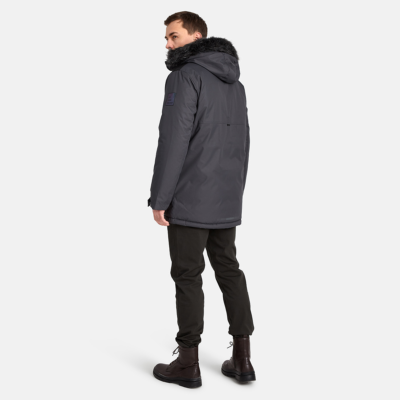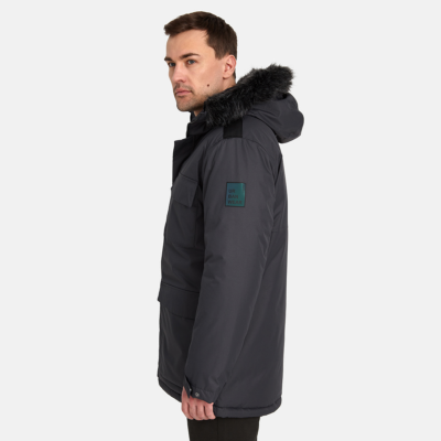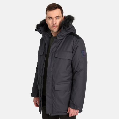 Men´s waterproof and windproof winter paka with 300g of insulation. Breathable outer fabric. Soft lining inside the parka. Adjustable hood. Ribbed cuffs at the sleeve ends. Adjustable sleeve ends. Two-way zipper covered with a flap at the front. Magnetic-fastened pockets and front flap. Elastic cord tunnel with integrated stoppers at the bottom hem. Removable faux fur trim on the hood. Reflective details on the outer fabric.