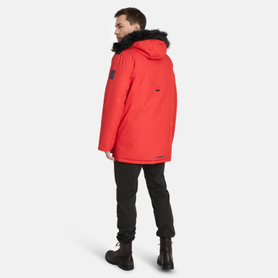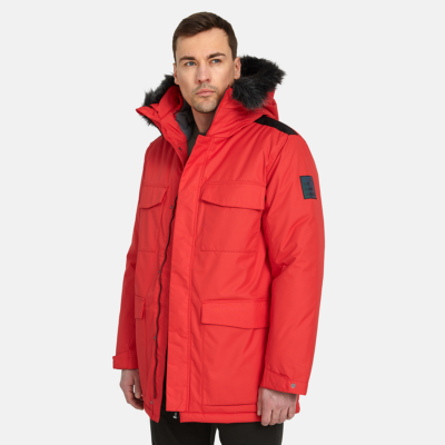 Men´s waterproof and windproof winter paka with 300g of insulation. Breathable outer fabric. Soft lining inside the parka. Adjustable hood. Ribbed cuffs at the sleeve ends. Adjustable sleeve ends. Two-way zipper covered with a flap at the front. Magnetic-fastened pockets and front flap. Elastic cord tunnel with integrated stoppers at the bottom hem. Removable faux fur trim on the hood. Reflective details on the outer fabric.