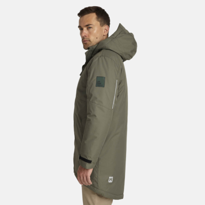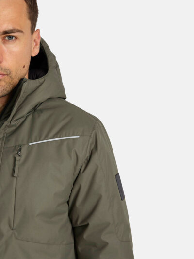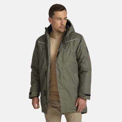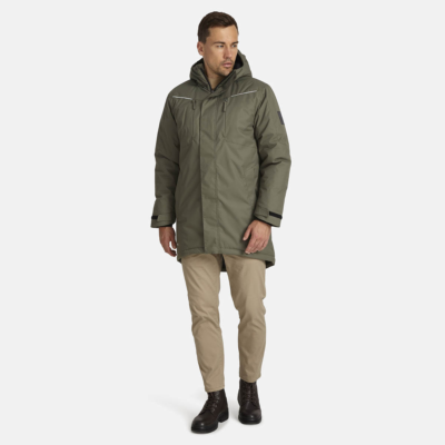 Men’s water- and windproof winter parka with 300 g insulation. Breathable outer fabric. Soft lining fabric inside the parka. Adjustable hood and sleeve cuffs. Ribbed cuffs on sleeves. Waterproof taped seams. Reflective detailing on outer fabric.