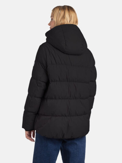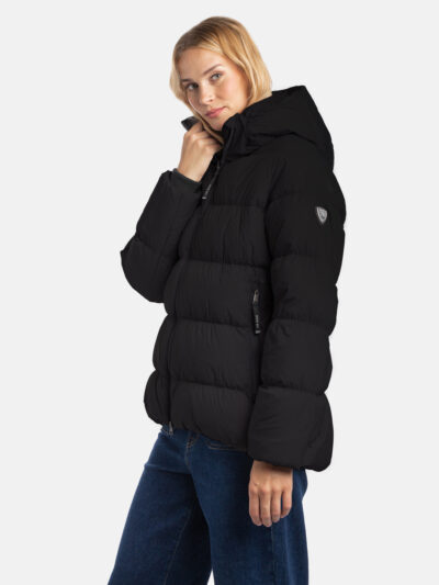 A women’s down jacket that is water-repellent, windproof, and built for warmth, comfort, and protection. The breathable outer fabric is crafted from recycled fibres, while the soft inner lining enhances comfort. Insulated with a blend of feathers and down, the jacket offers lightweight warmth. Ribbed sleeve cuffs help retain heat, and the two-way front zipper ensures ease of use. The hood is removable for versatile styling, and reflective detailing on the outer fabric provides added visibility in low light.