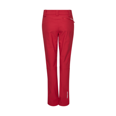 Women’s windproof Softshell pants. Brushed soft on the inside. Buttonhole-adjustable waist. Integrated zippered pockets. Reflective logo on lower leg.