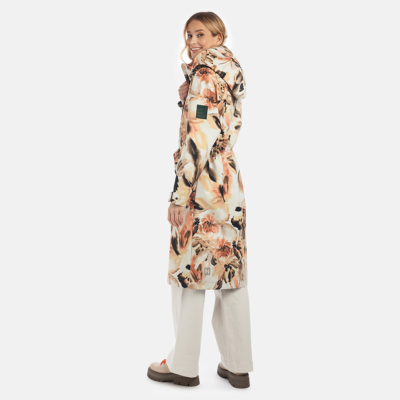 Loose cut water- and windproof ShellProtect coat for women. ShellProtect fabric is an innovative, three-layer material, therefore the product does not have a lining. Adjustable hood and sleeve cuffs. Waterproof taped seams. Rubber cord tunnel with stoppers on the waistband. Front two-way zipper with a snap button placket. Reflective elements on fabric.