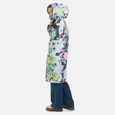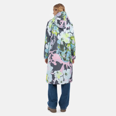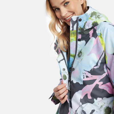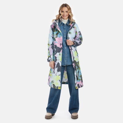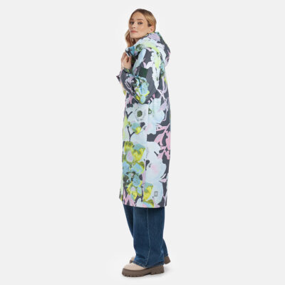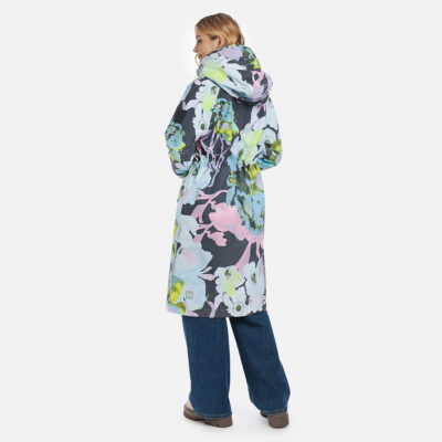 Loose cut water- and windproof ShellProtect coat for women. ShellProtect fabric is an innovative, three-layer material, therefore the product does not have a lining. Adjustable hood and sleeve cuffs. Waterproof taped seams. Rubber cord tunnel with stoppers on the waistband. Front two-way zipper with a snap button placket. Reflective elements on fabric.