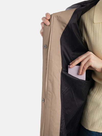 Women’s waterproof and windproof coat, suitable for spring and autumn. The outer fabric is dry-touch - which means, it has a matte effect. The lining of the parka is soft. Adjustable hood and sleeve cuffs. The outer fabric is decorated with reflective details. The front closure feature hidden magnetic snaps. It is more loose fit coat.